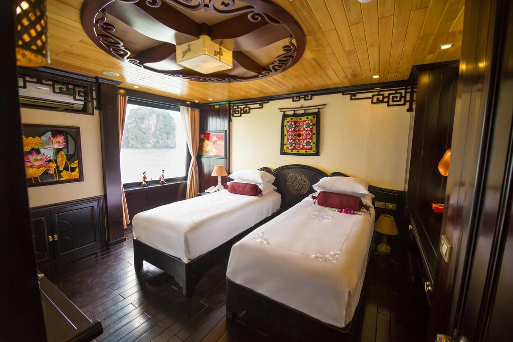 Come onboard The Halong Dragon Pearl Junk . Be charmed by her exquisite luxury, intimate setting and unrivalled home from home service. An unforgettable way to witness the serene, calm setting of Halong Bay's exceptional natural beauty.